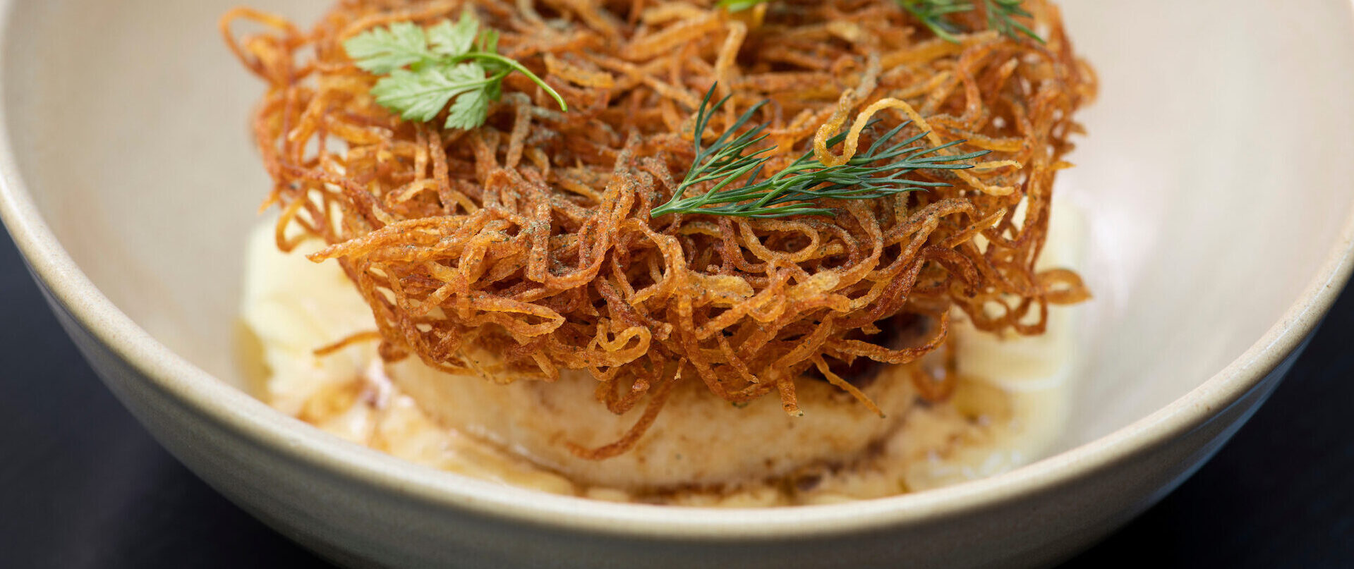 - Valele turskapaloja vaahtoavalla voilla noin 2 minuuttia, käännä fileet ja kypsennä vielä noin 10 sekuntia. Aseta 50°C-asteiseen uuniin vetäytymään noin 5 minuutiksi.