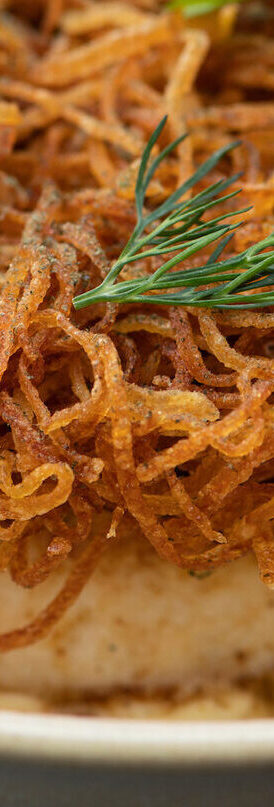 - Friteeraa perunoita kunnes öljy lakkaa poreilemasta ja perunat ovat kauniin ruskeita.