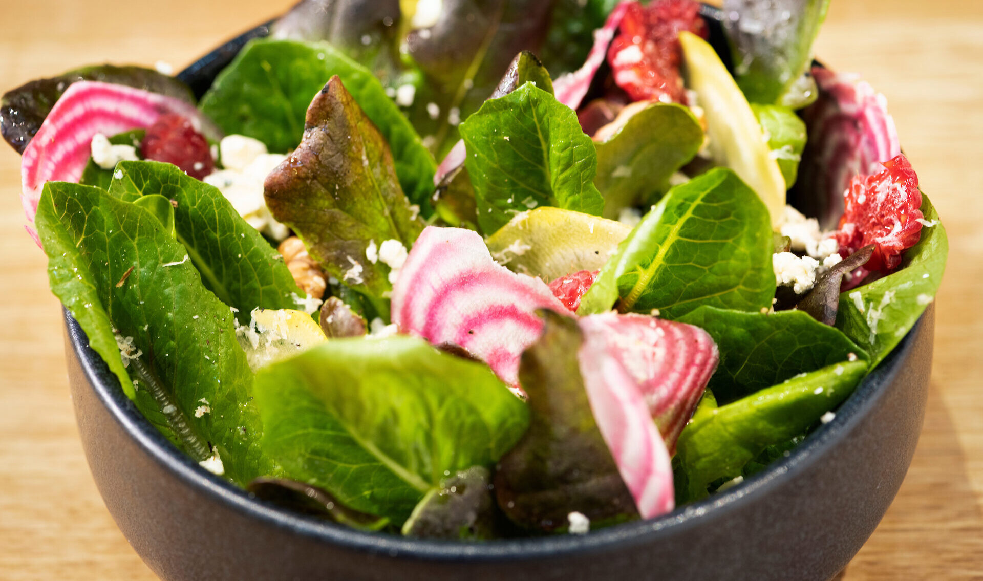 • Leikkaa salaatit kahteen osaan ja pirskottele öljyä salaattien pintaan.